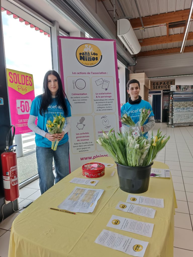 L’Intermarché de Notre-Dame-d’Oé nous a de nouveau accueillis et en compagnie d’Amelle et Thomas, deux jeunes de la délégation Campus UNICEF de Tours, nous avons, durant deux heures, proposé nos bouquets et expliqué notre action aux clients.